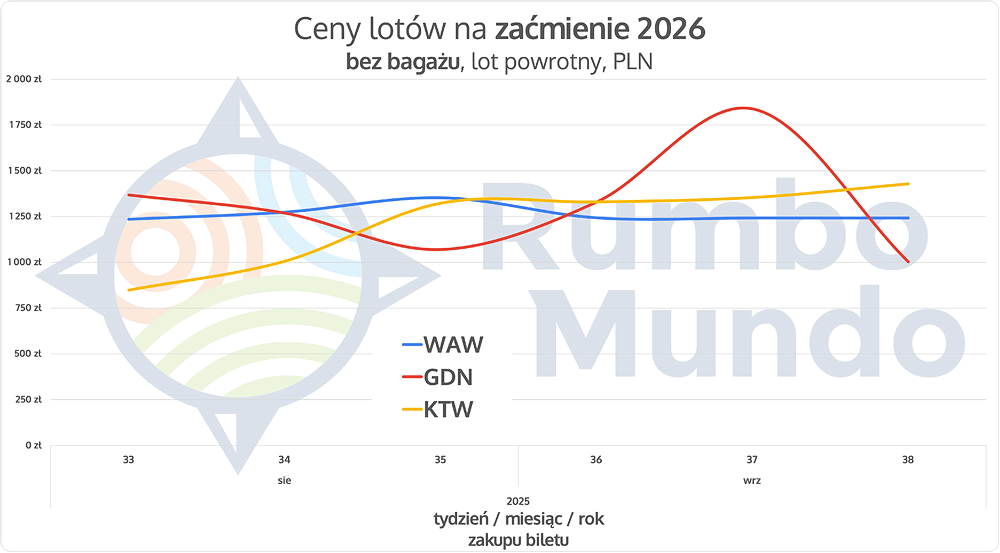 Aktualne ceny przelotów, samochodów, kamperów, promu, hosteli i hoteli na okres zaćmienia 2026
