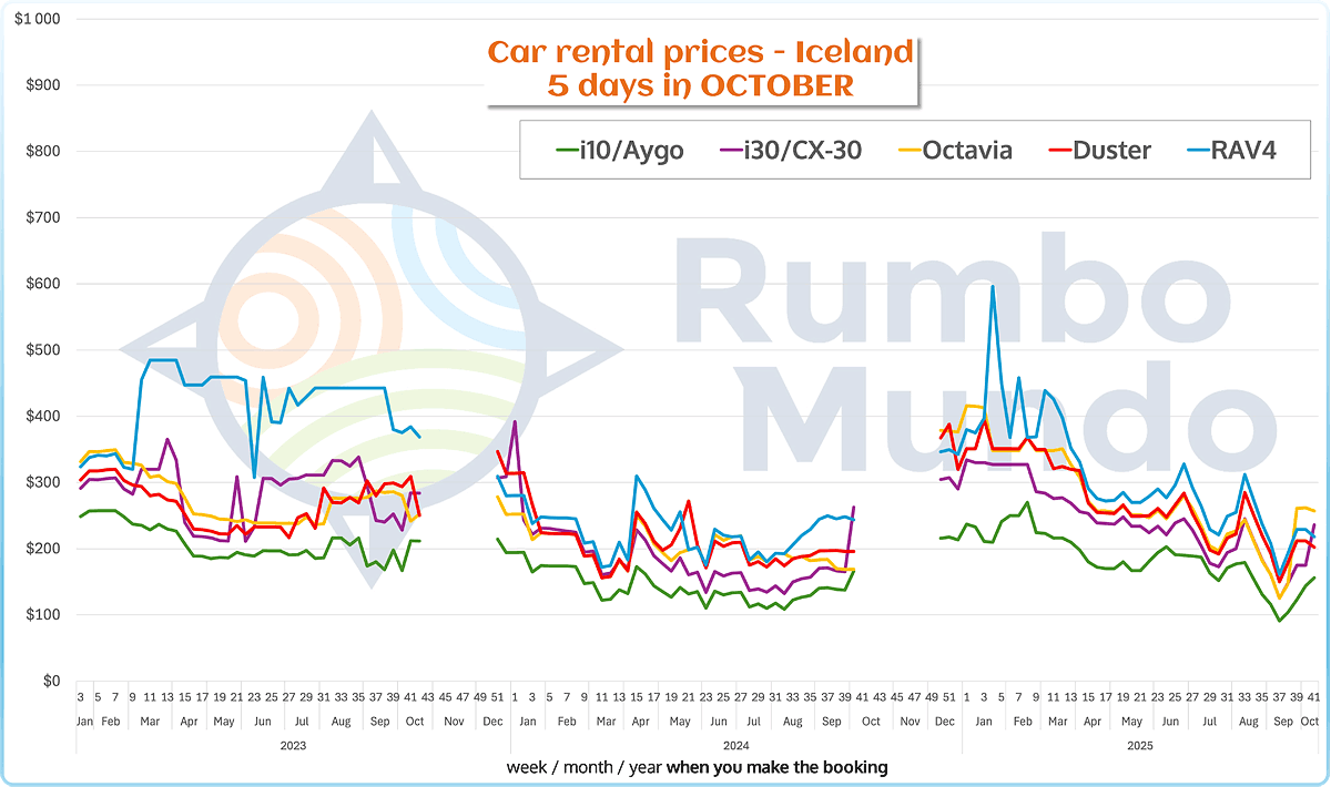Of course, it’s always best to start by analyzing the price charts on RumboMundo 🙂 Here you’ll find key information about what price level is actually attractive for a given car at a given time of year [see charts above]. But the car rental deals themselves are best found on online search engines.